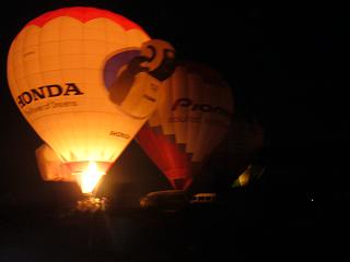 ■熱気球、絵になる~■栃木県茂木市の茂木ツインリンクを中心に、2006栃木熱気球世界選手権 熱気球ワールドホンダグランプリ最終戦が開催されています。2006/11/18(土)の夕方17:00~17:30(といってもこの時期ではもう日没で暗い)の30分間だけ、「鬼怒川道場宿緑地」で、バルーンイリュージョンが開催されました。新聞折込ちらしが入っていたので、主人に頼んで連れて行ってもらいました。たくさんの人が集まってきていて、三脚を持ったカメラマンもたくさん!いました。 ←この気球は、ASIMOくんが立体的です。 アナウンスに合わせて、1つ2つと気球にバーナーの スイッチが入れられます、で、いいのかな^^; シャッターチャンス!と思っても瞬間のことで うまく撮れないことが多かったです。 カウントダウンしてくれた時はさすがに、 バッチリ摂れました~! *********************これより下は、2006/11/19(日)朝のものです。 2006/11/19(土)早朝の競技参加の気球がアップする時です。会場となっていると思っていたツインリンクもてぎ(茂木)に向かう途中で観ました。これも熱気球世界選手権大会参加バルーン と思ったら、これは搭乗体験用の気球でした。これは、「ツインリンクもてぎ」の中を走っていて、目の前に見えてきました。■このあと気球に搭乗体験!■画像を書加工してアップするだけでも時間がかかって大変な作業でした。まだ全部アップできてないし、文字も書けてません。搭乗した時の画像もあります。けっこう怖かったです^^;明日、出きれば、続きをアップしますね。久々に、リス村もいったので、そのこともアップしたいです。■まだやってます■競技も、バルーンイリュージョンも、まだ開催されます。11/23も、朝から行く予定です。■参考サイト■★ツインリンクもてぎ 公式サイト 気球のことだけでなく、いろんなイベントがあります。★栃木熱気球世界選手権 2006年11月18日(土)~26日(日) ルールや歴史などが分かります。★ツインリンクもてぎスタッフによる 2006栃木熱気球世界選手権フォトログ★Super Balloons Blog もてぎ熱気球大会に参加する学生ボランティアスタッフのブログ■トラックバックさせていただきました■★show-ringさんの「Motegi、茂木、、もてぎ熱気球ブログ」の日記にトラバさせていただきました。「11月18日午後のイベント」では、日本人パイロットの6機という説明です。他にも、たくさん、この選手権のイベントの日記、画像が有ります。★HIROさんの「HIROG」の日記いトラバさせていただきました。2006/19/16の「【動画】バルーンイリュージョン」では、動画で観ることが出来ます。同日「バルーンイリュージョン」では、静止画がたくさん楽しめます。★mimi_mihorin さんの「☆Let's have fun☆」の2006/11/18の日記「バルーンイリュージョン」を読ませていただき、同じところにいたみたい~!23日も行くのね、同じ~!と嬉しかったです。■追記■以下も、よろしくね。200611/22の「ツインリンクもてぎで熱気球体験 1」200611/22の「ツインリンクもてぎで熱気球体験 2」■mixiやフリー・エムエルもやってて■なんか忙しくて、楽天内のお友だちのところになかなか行けません。すみません~!■ランキングに参加してます■この日記に共感してくださった方、何かを得た方にお願い~。 よろしければ、ポチッと、どうぞ、お願いいたします^^;19:46