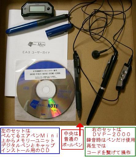 ■まずは念頭のご挨拶■あけましておめでとうございます。旧年中は、mixiブログをよくサボりました。そんな私でも、お付き合いいただきましたマイミクさんに感謝です。今年は、もうちょっとmixiをちゃんとやろう!と思います。どうぞ、よろしくお願いいたします。■書いたものをデジタルにしたい■PCから離れている時にメモした物って、そのまま走り書きで置き去りになってることが多いです。せっかくいいセミナーに行った時のメモ、いい話や情報を本やTV、新聞記事を見つけた時のメモ、書いたはいいけど、それをブログや友達へのメールに話題として書こうと思っていても、それっきりになってしまってます。 ■いつでもPC持ち歩ければ、でもね~■私はペンでメモしながらそのペンが音声を録音してくれるDVP-2000を たまに使ってました。4時間充電で8時間録音できて、操作も簡単で、これはこれで満足。でも、やっぱりデジタルにするには、聞きながら、PCで打つしかない・・・。ある日、キングジムのポメラを見つけました。2つ折に畳むと文庫本のサイズになるキーボードに打っておくとデジタル保存されて、USBでPCに転送出来るというのも、いいです。品切れだったし、実勢価格2万だから買わないでいたのですが、おかげで、もっと自分にいい物を見つけました。■紙に書きながらデジタル保存するエアペン■随分昔から存在したらしい、ぺんてるのエアペン。今はとても小型になって、使い勝手が更に良くなってます。暮れに文具ショップからメルマガが来て存在を知りました。デジタルグッズで文具、売ってるショップも色々です。書いた文字をデジタルにしてくれるだけでなく、筆跡をそのままや、線や図も取り込むこともできるので、ペンタブに分類してるショップもあります。○mazonでは類似品の動画もあって、思ってたことが映像で確認できます。調べたら、めちゃ欲しくなって、詩って30分以内に注文してました。そして年明けてそのショップの始業ですぐに送ってくれたので、今日受けとりました。■説明書は小冊子30ページくらい■DVP-2000は小さなメモみたいな説明書だったのに、エアペンは、それに比べて説明量が多い~。もっと色々できるし、インストールも必要~。文字認識のためのソフトをインストールして、メモリーユニットを充電して、デジタルペンに電池を入れたら、使えます。■って、まだやってない~■便利を使いこなすには、ある程度説明書を読まないといけないですね~。それって、けっこう面倒~。てことで、まず、mixi内にコミュを探して入れていただきました~。ポメラのコミュもある~。■関連コミュにポメラが有った~■ポメラにはポメラの良さがあるから、試してみたいな~ポメラについては過去に日記を書きました。興味ある方は、すでに使用中の他の方との日記ともリンクしあってますので、情報収集できますので、どうぞ。「キングジムのデジタル筆記具ポメラいい!」■楽天内で、探してみる?■ by on HOME-オンホーム-楽天内で、ぺんてるエアペンを探す別会社の類似品も存在してるようですし、エアペンはいろんなタイプがあります。私は、e-Plaisir(イー・プレジール)で、 税込 12,880 円で送料無料で買いました。が、最後の1個だったので今無いです。 byファミリー通販 ここ、安いです。楽天内で、DVP-2000を探す私は、去年か一昨年、どこで買ったっけな~、メルマガもらって、なかり安く購入できました。DVP-3000というのも存在してるみたいだけど・・・・。■読んで下さって、ありがとうございます■時間無くて、色も変えずに、観難くて、すみません。
