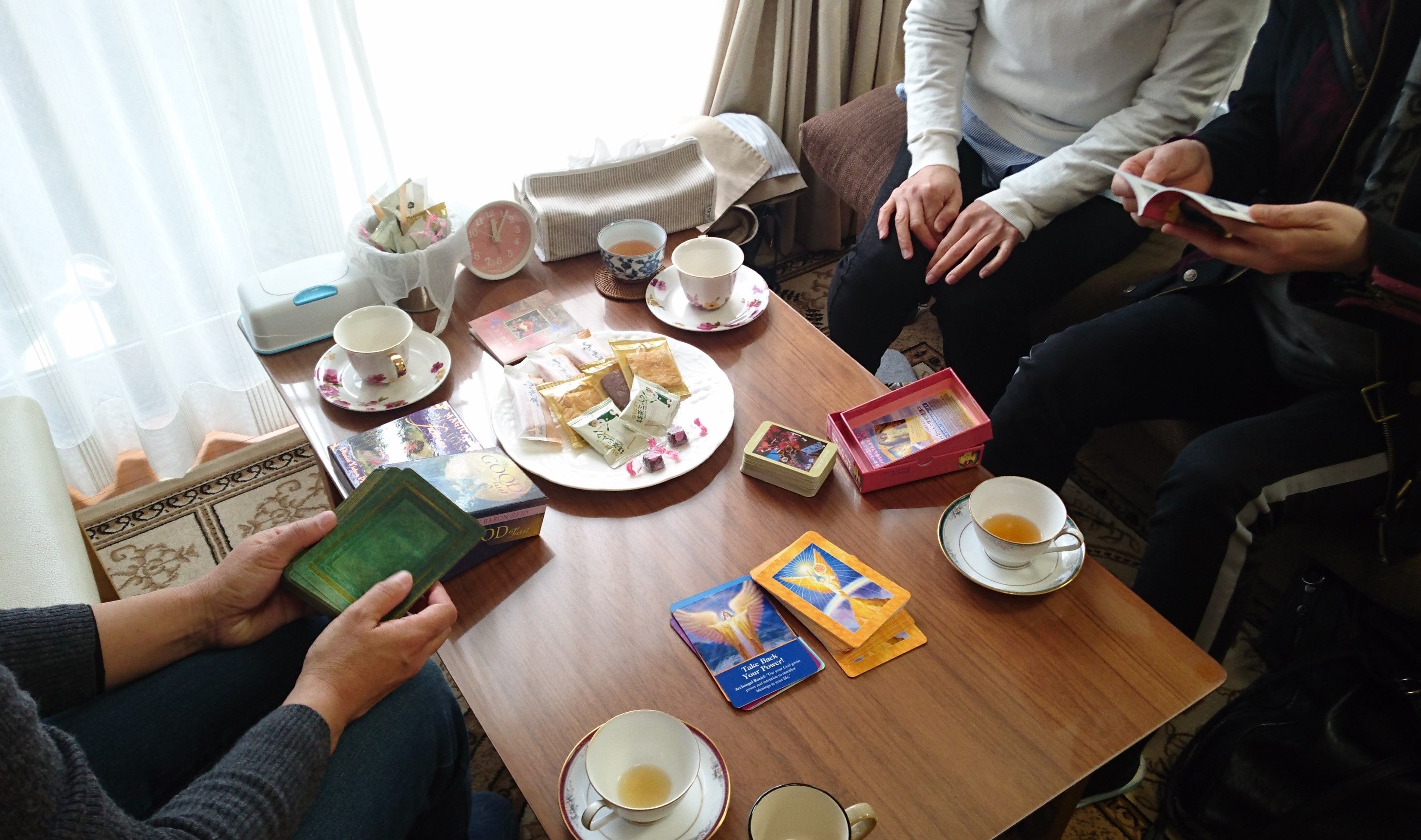 人も自分も満たしてます、チャネラー・まりくーとです本日寒い雨の中『スピリチュアルお茶会』にいらしてくださったみなさま、本当にありがとうございました!楽しかったですね~~スピリチュアルなことを自由に話せる場、というのがまずとても貴重で、みなさんがそういう話を当然のこととして受け取ってくださる、ということが私にとってはとても嬉しいことなんですそしてまた、今日はすごい話をシェアしてくださった方もいらっしゃってそういった他の生き方を知ることができる、ということもグループでやることの醍醐味ですよねみんなすごすぎて私なんて、、、と思ってしまうところもあるかもしれませんが、人は人、自分は自分です。今日受け取ったメッセージを思い出して、人と比べるのではなく、自分自身がどうやったら幸せになれるのか、ということを模索していっていただけたらと思います。また、今日は私のチャネリングと一緒にみなさんもカードでリーディングをしてみる、ということにトライしてみましたが、それもまた素晴らしい結果になりましたね!みなさん、それぞれの方にふさわしいカードを引いてらして、私も鳥肌が立ったくらいでした!オラクルカード、侮れません!(ボイジャー&タロットも!)楽しかったので、次回もこんなスタイルでやって行こうと思います次回はちょっと遠いですが9月の開催を予定しています。お時間が合えばぜひまたいらしてくださいね!