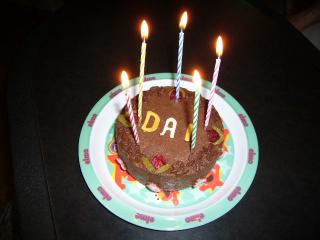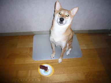こんばんは、ダイのおかーさんです。今日の大阪は秋晴れから一転してどしゃ降りの雨が降ってきました。今朝、5時半に仕事に出かけた主人をお見送りしてダイのお散歩に・・・。5時半はまだ暗くて、昨夜からの満月がまだ夜空にきれいに浮かんでいました。夜中に見るよりも黄色く見えるんですね♪土、日と忙しくて少しブログをさぼってしまいました・・・。土曜日、関東で寮生活をしている2人の息子が1泊だけ帰ってきました。主人も帰ってきて家族4人が揃うのは何年振りだろう?せっかく全員が揃ったので少し早いんだけど11月13日がお誕生日のダイのお祝いをする事に。先日のブログで教えていただいたケーキ屋さんで取り寄せたこのケーキ。おからと豆乳を基本に手作りされていてカロリーもおさえ目。 その節は、氷0207さん、*naokichi*さん、メルキオールあいさんご親切に教えていただいてありがとうございました。今回はダイの身体に一番合っていそうなこのケーキにさせていただきました。 家族みんなから「ハッピーバースディ♪」の歌を歌ってもらってます♪ダイは少し神妙な顔つき。 いったい何を思っているんでしょうね。 歌の途中で我慢できずにつまみぐいをしてしまいました。ローソクの炎は怖くないのかなぁ? 最初は晩ご飯の量を減らしてオヤツ代わりにケーキをあげるつもりだったのですが晩ご飯をケーキに代えて全部あげちゃいました。ダイはものすごい食いつきで、時々口の中をもごもごさせながら休憩することなく一気に食べてしまいました。その後、大きなげっぷをしたのは言うまでもありません。失礼。。。家族にお祝いしてもらいケーキをお腹いっぱい食べて爆睡状態のダイです。本当のお誕生日はもうちょい先ね・・・。