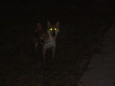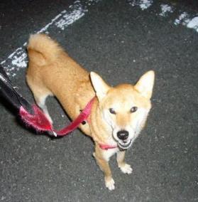 こんばんは、ダイのおかーさんです今日の大阪は27度を越える夏日でした。でも、秋の虫たちの合唱の声も日に日に小さくなってきましたね。仕事がある日は明るい時間にお散歩に連れて行ってあげれなくて今日は夜のお散歩になってしまいました。 フラッシュ無しだと目がひかってるぅ。 体にリードが絡まっていますよ。 ほらほら、リードが絡まってますってば!!夜のお散歩だと1時間弱のお散歩になってしまうから、お仕事がお休みの日にはいっぱい公園で遊ぼうね♪