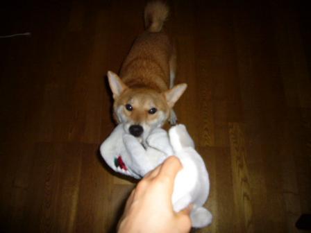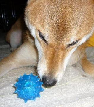こんばんは、ダイのおかーさんです。今日の大阪は木枯らしが吹いて寒い一日でした。朝、自転車で出勤する時あまりにも寒くて手袋を着用しました。明日からはマフラーが必要かも・・・。先日、友人と大阪梅田の商業施設にある観覧車に乗りました。ビルの7階部分に真っ赤な観覧車があって直径75mで最大の高さが106m。怖かったけど、夜景がキレイでしたよ~。昼間だと足がすくんだかも・・・。週末にはカップルとかが多いんでしょうね。残念ながらおばちゃん3人でにぎやかに乗りました♪大阪に長い間住んでいてもまだまだ行っていない場所があるんですよ~。さて、今日のダイは・・・ネットで注文をして届いたばかりのイガイガでピカピカ光るボールをゲットしてご満悦♪ 「早くかみかみしたいよ~」 「まだ待たせるつもり?」 右手にはしっかりとボールが押さえ込まれてるの・・・。ブルーのボールは衝撃でピカピカ光って思わぬ方向に飛び跳ねるのでダイは大興奮!!100円だったかな? お安いのにダイは大満足で喜んでくれました♪