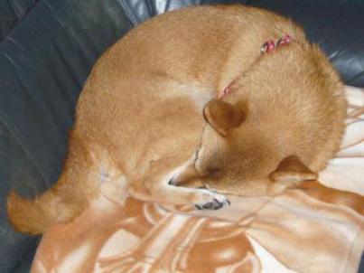 こんばんは、ダイですみなさん、お久しぶりです寒くなりましたね~。 まだ、冬毛が生え揃ってないから最近のボクはこんな感じで寝ています。今日のおかーさんは朝から超ご機嫌♪ものすご~くでっかい ローソクに火を点けて、ケーキを準備して。また、ボクのお誕生日会?んっ?どうも違うらしい。おとーさんと「おめでとう♪」の電話をしていた・・・。いったい今日は何の日だ!?ケーキ越しに覗いていたらご機嫌なおかーさんがガムをくれました♪オヤツの余韻に浸っていたら・・・おかーさんが「ダイ、爪が伸びているから近いうちに切りに行こうね~」って。いやだぁーっ!!!