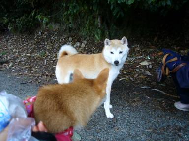 こんばんは、ダイのおかーさんです ここ数日、更新をサボってしまいました。 金、土、日、月と大阪は秋晴れが続いています。少し汗ばむほどの陽気です。金曜日、一週間ぶりに帰宅する主人を駅まで迎えに行き、海鮮の美味しいお店に行きました。ダイが先日のお散歩で出会った美味しい匂いがする手のマスターのお店です。ローカル番組ですが、今日はテレビでも紹介されていました。その夜、満腹感に浸りながら 寝ようとしたときにダイがひきつけを起こしたのです。最近は体調も気候も安定していたので安心しきっていたのですが・・・。すぐにおとーさんがダイを抱き上げて ヨシヨシしてくれました。ダイはもう一度意識が飛びそうになっていたけどおとーさんの呼びかけで持ち直しました。恐怖の為、震えがおさまらないので 暫くおとーさんに抱っこしてもらっていました。ダイもようやく落ち着きを取り戻したので いざ寝ようとしたら 今度は私の体調が・・・。なんと夕食に食べた 牡蠣がアタッテしまったのです。決してお店の牡蠣が悪いのでは無く、私は牡蠣アレルギーなのにあまりにも美味しそうなので、調子に乗って食べてしまったのです。七転八倒、上や下への大騒ぎ。朝まで眠れぬ夜を過ごし、一晩で1.8キロ体重が減りました。汚い話でゴメンナサイ!! 私もダイも悲惨な夜でしたが、今回は主人がいてくれたのでとても心強かったです。土曜日は、まだ一度もご先祖様にご挨拶をした事がないダイをお墓参りに連れて行こうと計画していたのですが、長距離ドライブになるので、体調の事を考慮してお家でお留守番してもらう事にしました。日曜は主人の試合の応援に。団体戦に出場していい成績を収めて有終の美を飾りました。主人は今回で現役を引退するそうです。防具を外した姿をみて涙が溢れてきました。本当にお疲れ様でした。ふぅ、、、少し湿っぽくなりましたね・・。今日、車を運転中に柴ワンコ3匹をお散歩させている方を見かけました。なんと、赤柴、白柴、黒柴の3匹です。 これって柴ワンコ好きには憧れですよね。かわいかったなぁ♪昨日はお出かけしててお散歩に連れて行ってあげられなかったので今日はめいっぱいお散歩に出かけました。公園ではジャグリングの稽古をしている人がいました。あまりにもお上手だったので、しばらくダイと見とれてしまいました。 夕暮れにはコウモリがたくさん飛んでいました。低空飛行をするのでダイも目で追っかけていました。