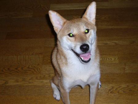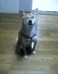こんばんは、ダイです。今日は一番寒かったんだってね・・・。おまけに雨が降っていたのでお散歩はパス。冬毛がまだ生えていないボクはお日様が恋しかったんだ。今日はボクのお家のご飯の順番をご紹介します。まず、おとーさんとおかーさんがご飯を食べて食べ終わったらボクの番なのでいつもこんな風にお座りをしたり びょ~んと伸びて待ってます。 偶然のウインク!? まだかなぁ?おかーさんが食べているときは大人しく待っていられるんだけどなぜか、おとーさんだけが食べているときはそわそわしちゃう。おかーさんは絶対にボクにつまみ食いをさせてくれないのでお料理が運ばれてきたら、いつもニオイだけをパクパクと食べています。おとーさんはおかーさんに叱られながら時々アルコールをペロッと味見させてくれるんだけど 必ず「くしゅん」ってくしゃみが出ちゃうんだ。あれって、美味しくないよね!!