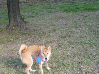 こんばんは、ダイのおかーさんです。今日の大阪はいいお天気で少し動けば汗ばむような陽気でした。仕事が早く終わったのでこのお天気を逃すものかと脇目も振らずにダッシュでお家に帰りました。ダッシュで帰宅した理由はもちろん・・・洗濯、布団干し。では無く、ダイとのお散歩♪公園は少しぬかるんでいる所もありましたが、ダイはこのとおり元気いっぱい走り回っていました。あ~ぁ、昨日シャンプーしたんだけどなぁ。。。ここ数日、お天気が悪かったからパワーが有余っていたのね。。。 「だ~いちゃん♪」名前を呼ばれてオヤツもらえると思ったでしょ?(笑うそうそ、ダイの大好きな煮干しをあげましょね。最近、カメラを向けたらこんな表情をよくするんです。笑っているのか・・・? はたまた、まぶしいのか・・・?