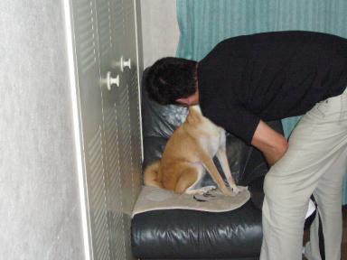 こんばんは、ダイのおかーさんです今日の大阪は曇りのち晴れで爽やかな風が吹いていました。今日は近くの公園にお散歩に行き、その後パラボワクチンの接種をしに動物病院に直行しました。ダイは喜んで病院の入り口を入って行きました。受付を済まして、順番待ちをしている間に、嫌な予感がしたのか「クゥ~ン、クンクン・・・」と繰り返して鳴きはじめました。看護士さんに「ダイちゃ~ん」と呼ばれると診察室とは反対方向に必死で歩こうと足が空回り(笑)診察台に乗せられ体重、体温、便の検査が終わり、後は先生が来られるのを待つばかり。ちょっとした物音に敏感に反応して耳がピン!ダイの緊張は頂点に達していて、何とか診察台から下りたくて私にすがりついたり、お手を繰り返したり脇の下にもぐりこんだりと無駄な抵抗を繰り返していました。かなり爪も伸びていたので爪切りもしていただき、注射も無事に済んで帰ってきました。帰宅後は疲れたのか3時間も爆睡していました。ダイ、おつかれさま。