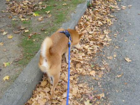 こんばんは、ダイのおかーさんです。大阪の日中は穏やかな秋晴れでした。夕方のお散歩では日が落ちたとたんに冷え込むようになりましたね。ダイも昨日あたりから、夜寝る時にはソファーで丸まって寝てたりします。季節の流れを感じますね。今日はシャンプーの予定だったので 思いっきり草むらで遊んでもらいました。ダイはごろごろしても私から何も言われないので調子に乗っていつまでもごろごろしていました。 お散歩の帰り道、風に吹かれて飛ばされた落ち葉に追いかけられびびって木の下に隠れているちょっぴり情けないダイです。 「だって、びっくりしたんだもん・・・。」