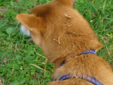 こんばんは、ダイのおかーさんです今日の大阪は秋晴れの晴天で、少し汗ばむぐらいの陽気でした。今日のお散歩でもやんちゃなダイは草むらに頭から突っ込んで遊んでいました。帰宅後シャンプーの予定だったので、気が済むまで遊ばせてあげました。 そうすると、こんな事になります。 ひとしきり遊んだ後はブラッシングをするのですが・・・ 今日はくっつき虫を取り除くのがちょっと大変でした。 今日も楽しかったね♪ 影をふみふみして帰りましょ♪