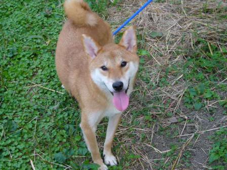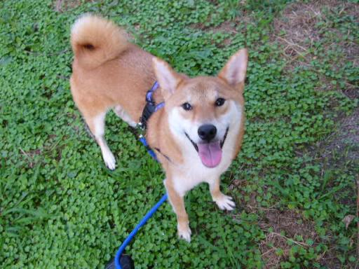 こんばんは、ダイのおかーさんです 今日の大阪は蒸し暑い一日でした。今朝、仕事に行く為、自転車に乗ろうとしたら・・・あらら、、、前輪がパンクしているではありませんか。。。昨日、空気入れで空気をパンパンに入れたから、パンクしてしまったのかなぁ・・・時間もなかったので今日は車で出勤する事にしました。仕事を終えて家に帰り、自転車を押しながら20分歩いて修理に行きましたが、パンクでは無く、ただ単に空気を入れる部分のネジ(?)が緩んでいただけでした。 あ~~つかれた・・・。 情けない。。。そんなおかーさんとお散歩に行こうとダイの熱い眼差しがお迎えしてくれました。ではでは、お散歩に行きましょうね。最近、ダイの夏毛が抜け始めたので、車に乗せるのを避けて近くのクローバー公園に行く日が続いています。ダイは大好きな公園で遊べて 超ご機嫌な笑顔を見せてくれました。 四つ葉のクローバーを2つも見つけました。 クローバーは摘み取らずにそのままにしておきました。う~ん、今日は朝からついていなかったけど クローバーを見つけたから気分は上々で一日を終えられそうです。 ダイのおとーさんは海外出張中。クローバーのご利益がありますよ~に。私の梅干しを食べたからか?おとーさんは便秘だそうです・・・。それでは みなさんごきげんよう♪