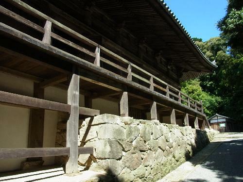 金堂(本堂)は舞台作りで、正面(南面)は石段を上がった場所からかなり高い位置にあり、