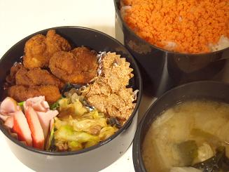 今日なぜか観月ありさとランチをしている夢を見ました。ものすごくオサレな店で『海鮮丼ないですか?』と聞いてしまいました。日本海育ちのみらこ☆です。こんばんは★ 昨日、あたし休みだったのね。だから夕方ちょっとお昼寝をしていた。そしたら途中で携帯が勢いよく鳴った。死にそうな声で『も・・・もしもし・・・』と出ると電話口からものすごくハイテンションなママンの声。 あ、何してたぁ?元気?さっきおばあちゃんと電話しててさ~しっかりごはん作ってる?そっちは雪どう?そういえばアンタ知ってる??あそこのスーパーがさ~・・・ ここらへんまでノンストップ。あたし、一言も発してない。 う・・・今寝てて・・・ とだけ言い残したら 夜電話ちょうだい♪ じゃあね♪ って切られてしまった。 そしてあたしはまたちょっと寝た。夜9時過ぎ、電話をかけてみた。そしたら出たのは妹。ちなみに妹は『はい?』と超めんどくさそうに電話に出る。あたしの番号が通知されてるからだと思うけどさ。いつもちょっとムカっとする。 そうそう、それでママンに代わって、って頼んだの。そしたさ、 え?飲み会行ってるよ? ふふふ。飲み会でしたか。たぶんさ、飲み会前でヒマだったからあたしにかけてきたんだな。じゃあ帰ったら電話してね、と言い残して電話を切った。それから約24時間過ぎようとしてますが、一向に電話が鳴りません。さすか、キング・オブ・マイペース。 ちなみにおばあちゃんもそんな感じ。しゃべることだけしゃべったらこっちの話はほとんど聞かずに電話を切る。でも、自分のことを話し始めると止まらないのである程度時間に余裕を持って電話をかけることが必要。 さて、悔しいけどこっちから電話してみよう。 *・゜゚・*:.。..。.:*・゜★゚・*:.。. .。.:*・゜゚・*★*・゜゚・*:.。..。.:*・゜★゚・*:. みら弁◆1月29日のお弁当◆ごはん、海苔佃煮、鶏の唐揚げチリソースかけ肉じゃが、キャベツとかにかまのポン酢和えロースハム、大根のお味噌汁 チリソースはケチャップと豆板醤で作った。簡単で使えるわ。