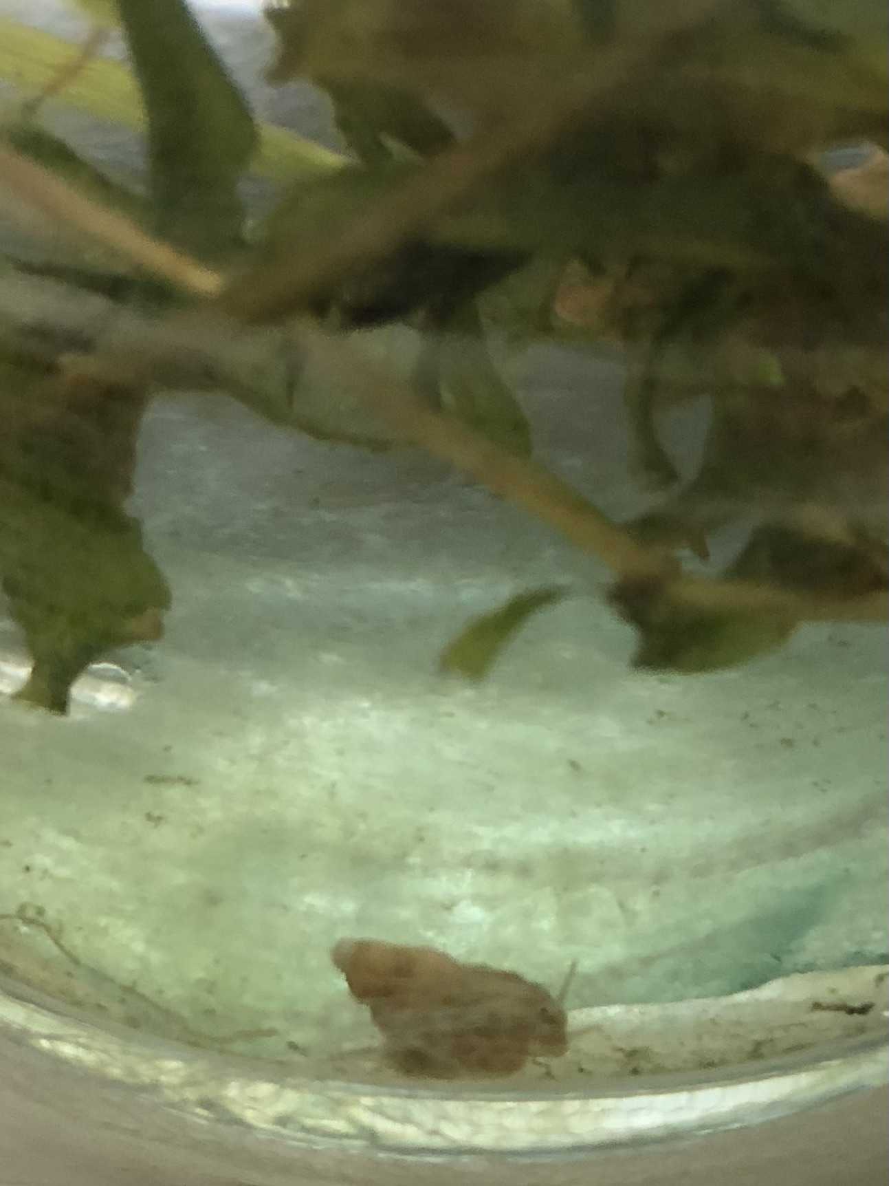 瓶アクアリウム『ミニミニ琵琶湖』の白タニシちゃん(❓)も元気(❓)🫙🌿🏖️🐚♡。