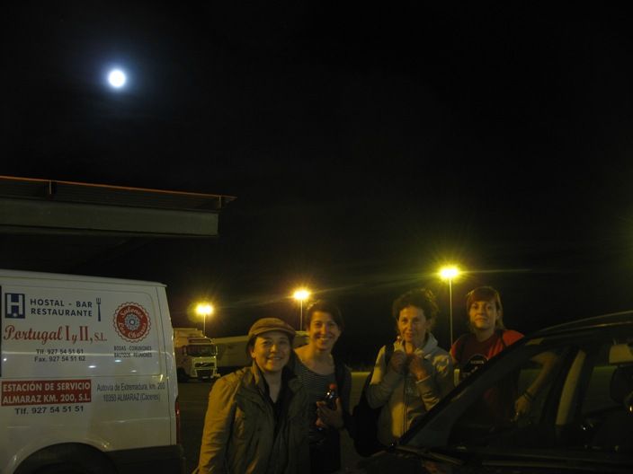 ようやく招待されたアーティストが全員揃ったのは18時。 スタッフの車でサントスデマイモナまで約4時間の道程を経て、たったいま初日の夜レセプションを終え、皆寝静まっている中、部屋の外のインターネットルームで一人明日の準備と整理を行っています。 道中に移動組4人で満月の下、1枚目の記念撮影。 本当に快い素敵な方々に囲まれています。