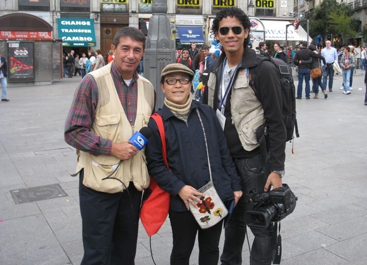 プエルタデルソル広場を歩いていて、エクアドルと記された報道チョッキを着たアナウンサーに遭遇。嬉しくなって立ち話、大いに話は盛り上がって、そのままインタビューとなりました。