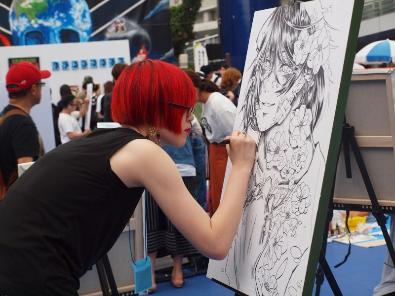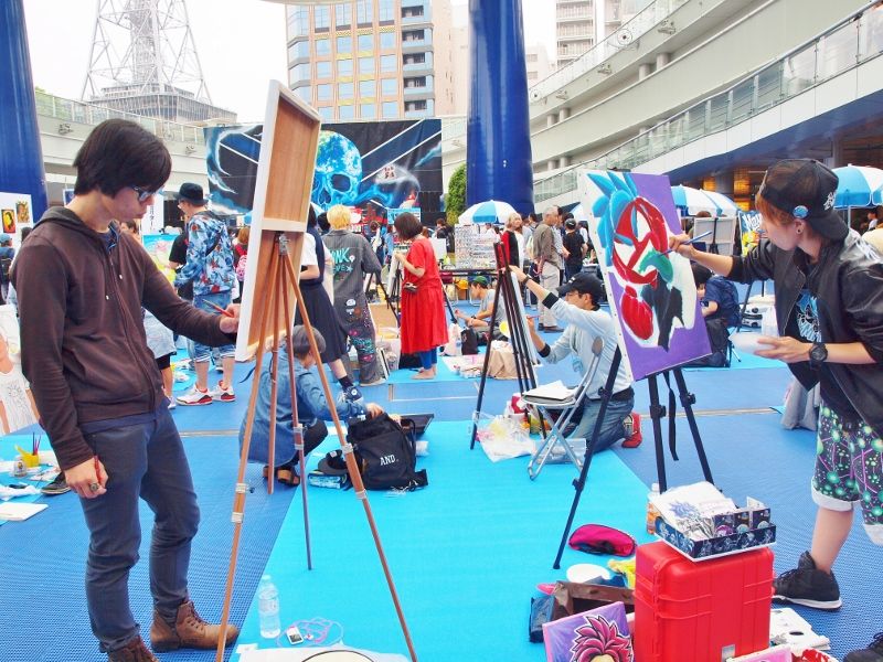 栄オアシスでは多くのアーティストの方々が絵を描いていらっしゃいました。実演販売、、その数100人。 100 artists live point こんなに才能豊かな方がひしめいている・・という、切磋琢磨な厳しい状況を目の当たりにしたような・・圧倒される光景でした。