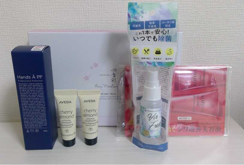 待ちに待ったBLOOMBOXが届きました今月はコチラ相変わらず種類豊富ですねそれでは、ひとつずつご紹介1.四季彩トライアルセット四季彩トライアルセットこのトライアルセットの内容はコチラ・フェイスマッサージ・化粧水・乳液・美容液四季彩は発酵から生まれた大吟醸で、潤いに満ちた美肌にしてくれるんだってゆらぎやすい敏感な日本女性のために、パラベン・タール系色素・鉱物油・紫外線吸収剤・香料といった5つのフリーで肌にも安心お米にもこだわった四季彩を使って、キメふっくらと潤いたっぷりなすっぴん美人を目指そう★四季彩公式サイトはコチラ★楽天で四季彩2.AVEDAシャンプー&コンディショナーAVEDAシャンプー&コンディショナーAVEDAチェリーアーモンドシリーズという、アロマの香りを楽しむシリーズですスイートフローラルの香りで、38種類もの植物エッセンスからなるアロマブレンドらしいよ97%自然界由来成分で髪を保湿してくれるんだってアーモンドオイル配合で、髪をやわらかく、艶やかにしてくれるAVEDAを要チェック★AVEDA公式サイトはコチラ★楽天でAVEDA3.ウイルフレッシュウイルフレッシュこれ1本でいつでも除菌ができるスプレー弱酸性で塩素不使用だから安心して使えるよエタノール配合なのでアルコールアレルギーの方は、注意が必要だねユーカリ油配合で香りもスッキリした香りマスク用のスプレーとして活躍しそうだけど、それだけでなく、空気中の除菌にも使えるらしい25mlでコンパクトなので、持ち運び用にとても便利1つは持っておきたい商品だよね★公式サイトをチェック★楽天でウイルフレッシュ4.ソフィーナ美容液ソフィーナ シワ改善美容液シワの凹凸に薬用有効成分が行きわたって、肌の奥深くまでしっかり浸透して、シワを改善してくれるらしいよ目元や口元に使えそうだねさらに、メラニン生成も抑えてくれるから、シミ・そばかすも防いでくれるんだって凄すぎるよね使うたびにシワを改善し、目立ちにくい肌にしてくれる美容液は要チェックです★ソフィーナ公式サイトはコチラ★楽天でソフィーナソフィーナって人気商品が多いよね5.ハンズエー ハンドクリームハンズエーのハンドクリーム正式名称はハンズエー プロフェッショナルプロテクションハンズエーのコンセプトは「第3の皮膚」という事で、真皮・表皮の上層で機能し、あたかも「第3の皮膚」として肌をプロテクトしてくれる、高機能ハンドクリームらしいよクリーム自体は柔らかくて伸びが良いし、塗った後もべたつかないよ「第3の皮膚」というのも塗ってみたらよく分かる1枚ベールをまとったかんじなんだけど、全く不快感もなく、すぐに馴染んでくれたよ匂いもなく使いやすいので要チェックです★ハンズエー公式サイトはコチラ★楽天でハンズエーまとめ今回は初めてお目にかかったハンズエーが、すっごく気になるし当たりの予感がしてるさらに、どこでも買えそうだけど、わざわざ買うのもなぁと思っていた、ウイルフレッシュが地味に嬉しかったよこれで実際に使ってみて、良さそうだったら買い続ければ良いしBLOOMBOXの良いところは、買うのを悩んでいた商品を使えるチャンスがあるところだよねBLOOMBOXを契約し続けて年月が経ちましたが、いつまでたっても辞められない気になる方は是非チェックしてみてください楽天にも毎月届くコスメボックスRAXYがあるので、楽天ユーザーの方はこちらもオススメですオリジナル商品を販売中御覧いただけると泣いて喜びます★tonshopへGOさりげなくアートも販売してます。ArtgeneへGOMyROOMにWelcome!★ROOMへGO動画も配信中です★動画サイトへGOブログランキングに参加中ですポチッとしていただけると嬉しいですお買い物日記ブログ村ブログ村ブログ村ブログ村