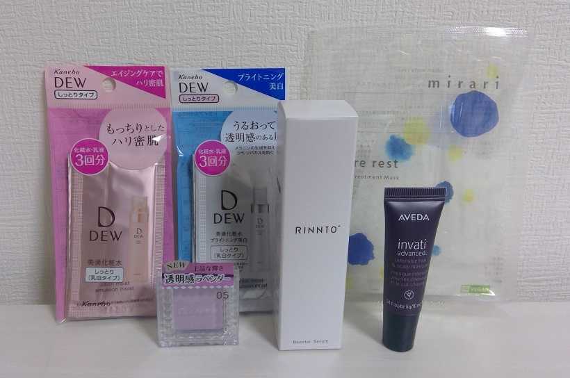今月もBLOOMBOXをご紹介それでは早速、ひとつずつご紹介します1.DEW基礎化粧品DEW基礎化粧品ブライトニング美白3回分とエイジングケア3回分ですブライトニングの方は、とろみのある化粧水が肌にス~っと浸透してシミ・そばかすを防止してくれる潤も与えてくれる嬉しい商品エイジングケアの方も濃厚でとろみのある化粧水で、角層深くまで浸透し、潤ってハリ肌にしてくれる香りはどちらもリラックス感を得られる、グリーンフローラルの香りですDEWは人気商品がいっぱいなので、使うのが楽しみです★DEW公式サイトはコチラ★楽天でDEW2.mirariシートマスクmirariシートマスクビーガンコスメブランドmirariのシートマスクいくつかある種類の中から、今の自分の心に響く言葉の物を選んでね1.more moisture 心にみずみずしさが欲しい2.more balance 良いバランスを取りたい3.more lighten 心がいっぱいいっぱいの方4.more rest 心が休みたいと赤信号を送っている方5.more calm down 心が敏感になっていて落ち着きが欲しい方6.more love myself 自分自身を愛したい方その日の肌と心に合わせて選べるシートマスクは、プレゼントにも喜ばれそうだよね★mirari公式サイトはこちら★楽天でmirari3.AVEDAトリートメントAVEDAトリートメント94%が自然界由来成分で、髪と頭皮のエイジングケアをしてくれるトリートメントですハリ・コシ・ボリューム感のある髪になりたい人向け頭皮に潤いも与えてくれるのも嬉しいヴィーガン・動物実験無し・風力や太陽光発電等々、とにかく環境への優しさを重視したAVEDA★AVEDA公式サイトはコチラ★楽天でAVEDA4.RINNTO導入美容液RINNTO導入美容液ノーベル賞受賞で注目されている、抗酸化成分フラーレン等の美容成分が多数配合された、導入美容液ですそれだけでなく8つのフリー処方で、肌の弱い方でも安心して使える商品みたいです厳選した天然由来成分を高濃度配合していて、自宅でエステ級のスキンケアを実現してるんだって見た目もシンプルデザインでオシャレだよね★RINNTO公式サイトはコチラ★楽天でRINNTO5.セザンヌアイシャドウセザンヌアイシャドウ紹介するまでも無い有名なセザンヌのシングルアイシャドウが入っていました透明感ラベンダーは色は付かないですが、ラベンダーカラーのすごく細かいラメが付いて、めちゃくちゃ可愛い派手すぎないから誰でも使えるかんじですかなり私好みなので大活躍しそうセザンヌは安くて高品質だから嬉しいよね公式サイトを見たら欲しいものがたくさん出てきたよ★セザンヌ公式サイトはコチラ★楽天でセザンヌまとめ今回は軽かったからハズレかな・・・って思いながらBLOOMBOXを開いたんだけど、全然ハズレじゃなかったよ初めてみたRINNTOの導入美容液が一番気になる今晩からこの導入美容液を付けてから、シートマスクをしようと思いますあとはセザンヌも地味に嬉しいBLOOMBOXは知らなかった良い商品に出会えるし、気になるけど買うほどでも・・・という商品を試せるし、毎月とっても楽しめています今までハズレだと感じた月がないので、安心して継続できます気になる方は是非ご覧ください楽天にも毎月届くコスメボックスRAXYがあるので、楽天ポイントも溜めたい方はRAXYもオススメですMyROOMにWelcome!★ROOMへGO動画も配信中です★動画サイトへGOブログランキングに参加中ですポチッとしていただけると嬉しいですお買い物日記ブログ村ブログ村ブログ村ブログ村