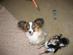久しぶりの日記ですヾ(°∇°*) 先週の日曜日、実家から神奈川に帰ってきました今さらだけど、京都のお友達のお家に遊びに行った時の様子を載せようと思います(*^▽^*) お友達のお家には2匹のチワワちゃんが居るので、マロゆずも一緒にお邪魔しましたショコラ・3歳♂とにかく元気で怖いもの知らずのショコラ。ミュウ・1歳♀体重2キロでゆずとほぼ同じ大きさのミュウ。普段のゆずは知らない人や犬を見ると、怖がって吠えたり唸ったりするけどこの日は違いました。ショコミュウママに抱かれても全然怖がらない。それどころかママの腕でリラックスモード( ̄∀ ̄)そしてショコラとは会った瞬間から意気投合。お互いの匂いを嗅ぎ合ったり、追っかけっこをしたり、とても楽しそうに遊んでましたよでもミュウはゆずに向かって吠えまくる・唸りまくる・・・( ̄∇ ̄;) マロに対しては全然吠えないのに。。。よっぽどゆずの事が気に入らなかったようです( ̄m ̄*) ↓女の子のミュウに嫌われたゆず、ちょっぴり切ない表情(*≧m≦*)プププ少し離れた所からミュウがゆずに冷たい視線を送ってます(笑)ショコラはゆずに興味津々。ショコミュウママが言うには、普段はショコラの方が人やワンコを見ると吠えまくってミュウの方がフレンドリーなようで、このようなパターンは珍しいみたい。『ワンコ同士にも性格が合う・合わないがあるのね~』と新たな発見でした(*´∀`)クスクス さて、この日、もう1匹のお友達がマロゆずに会いに来てくれました。パピヨンのコシノブ・1歳♂パパリンと私が学生時代バイトしていたファミレスの料理長の愛犬です。『コシノブ』って、おもしろい名前でしょ?この料理長の名前が『忍(しのぶ)』なので、『小忍(コシノブ)』と名付けたみたいです(ノ∇≦*)変わった名前だけど、すごく単純な由来です(爆)あれ、マロの写真が1枚もないわ・・・(゚∀゚ゞ)マロさん、チワワパワーに圧倒されたのか、部屋の隅っこの方でジッとして動かなかったため、わんこ達と戯れている写真が1枚も無いのです・・・久しぶりの日記なのにマロの写真を載せないのもかわいそうなので、最近撮った写真を載せます♪(* ̄ω ̄)アレルギーのマロさん。今皮膚の状態もすごく良いみたいで、お薬は飲まなくてよくなりました。あと2か月はおやつをガマンしないといけないけど、11月末の2歳の誕生日にはおいしいモノを食べさせてやれそうですヽ(・∀・)ノ ワチョーイ♪