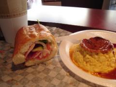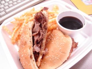 ヨシ!ようやっとソファに座って一服。コーヒータイム及びブログのヒトとなる・・・至福の時。帰宅してから、一気阿世にお片づけへ突入。ランドリールーム・・・私のものばかりで、コレはイカンと!デモさ、考えてみると、片付けるって言うのはA地点からB地点へ動かす・・・ってことよね。確かに、今回もこいつらを地階のストレッジに移しただけだからなぁ。いくつかは、思い切って「サヨナラ~」と捨てたりもしたけれど。まだまだ、敵は身中にありだ!なんだか、今日の金曜日はいつもの感じぢゃなかった。多分この週が一日少なかったせいもあるだろうが。ぇ?好いの?明日、休んでも。。。?エネルギーが、有り余っているわけでもないのにねぇ。勿論、ナニヤラ身辺忙しい日が続いたので嬉しいぞ。今日のうちに色々と進んだし。明日はゆっくり出来る♪さて、今日ちょっとした事件がCageで発生。ITマネージャーのスチュワートが、ナニヤラ真剣な面持ちでやってきて、「ID番号の***を使っている人は誰?」コレは、FAX=長距離の場合にインプットする番号のこと。各々、「ちが~ぅ」「あたしぢゃな~い」の声が発せられ、「で、どうしたってわけ?」誰かが、「911」(日本の110番)にFAXをかけ続けてしまったらしい。モンダイは、それによって「罰金」を科せられる!ッてことで・・・(間違いではあっても悪質と判断されると~)$500(約五万円)ですってよ!勿論一回二回の間違いなんて~のは、課金の対象ではないらしいが。(内心、ホッ。。。)凄いなあ。罰金かよ。スピードダイヤルを間違って押してしまった「人物」がいたようだ。そもそも、何で911がスピードダイヤルに登録されているんだ?実は、コレは初めてのことぢゃないらしい。ノンキなスチュワートも、今回ばかりは「沈鬱」な表情。やはり、スピードダイヤル911を削除したみたいだ。日本でも、こういうシステムになっているのかね?いやぁ、色々あるのねぇ。でも、コレが自分のミスだったら!と考えると・・・・・・。ゾ~~~気をつけよぅ!【久々に・・・ランチ劇場】「ビーフ・ディップ」っつう、食べモン。・・・こうやってグレービーソース(いわゆる肉汁!)にローストビーフ&バンズを浸して~パクッ、と。コレが、美味いのだぁ! 本場はねぇ、アルバータ州のなんだよなぁ。肉の厚みも違ったりして・・・嗚呼、恋しい~~~ ←喰ったくせに。。。