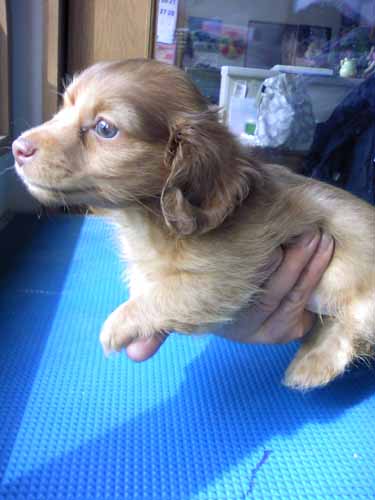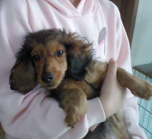 店舗に居るワンちゃんミニュチュア・ダックス・フンドレッド・ロング(06.12.28生,血統書付)\64,000-