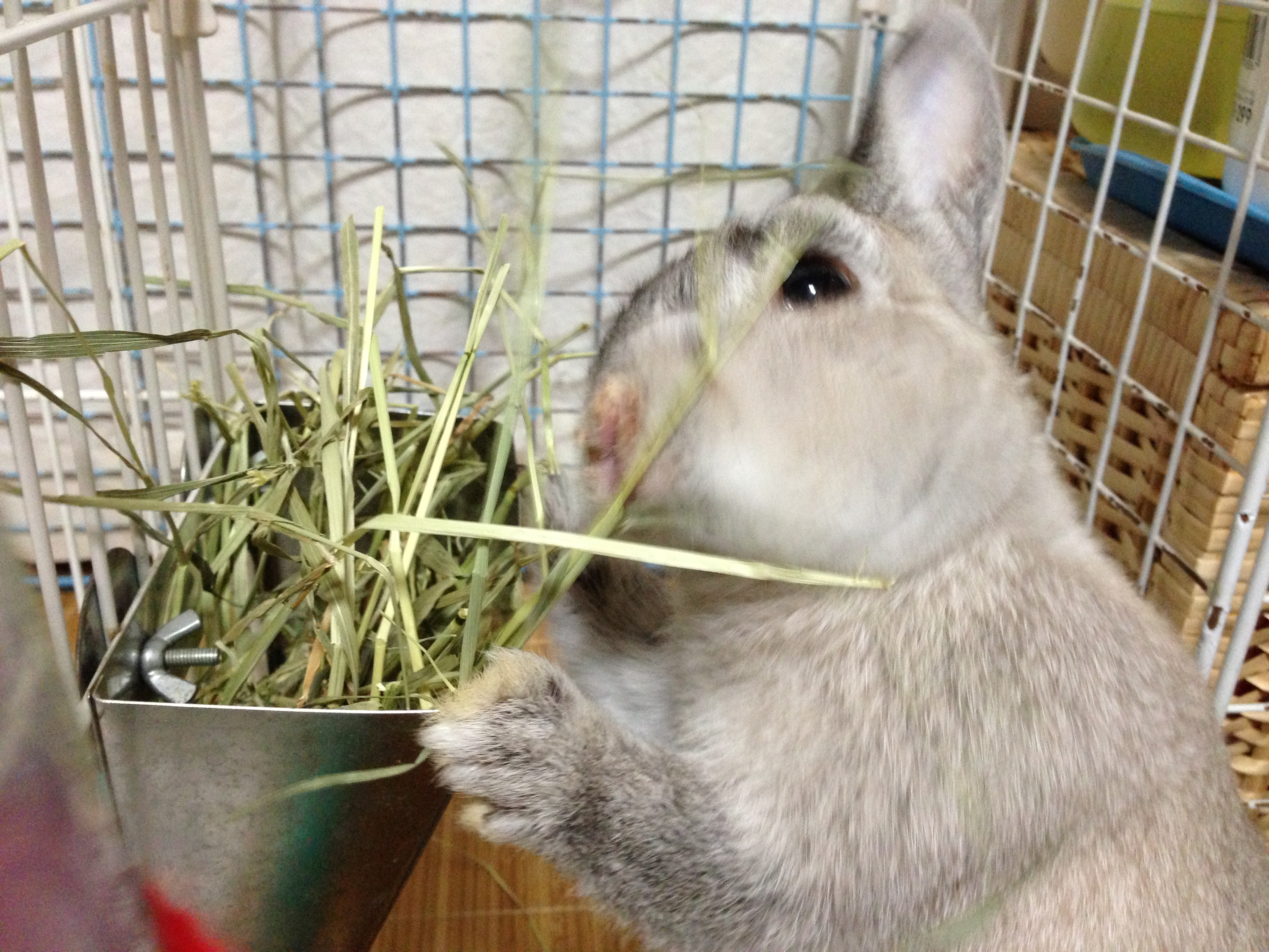 チモシー、サイコー♪( ´▽`) オイラの大好物! お代わり、ちょーだーい( ´ ▽ ` )ノ