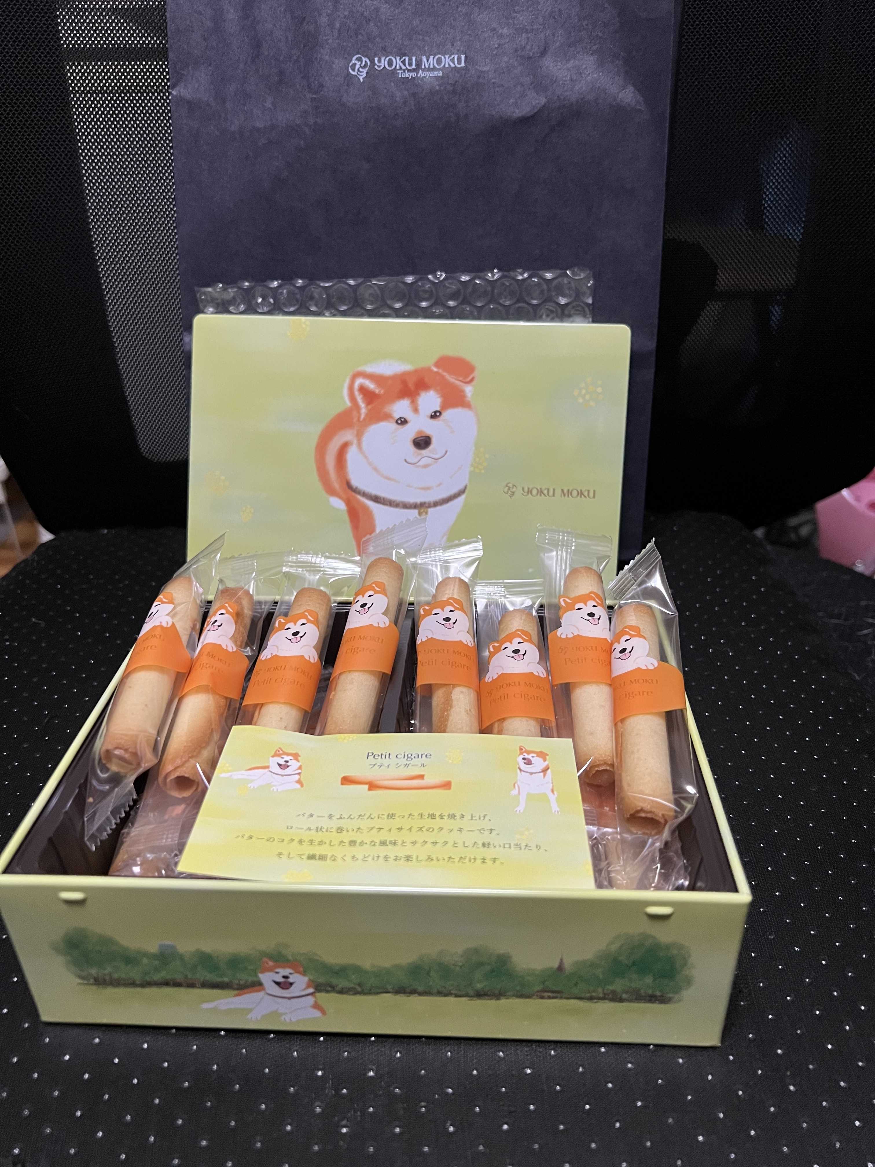 ヨックモックをいただいたの🎵 秋田犬の🎵 缶の絵もかわいいし 中の個装まで…