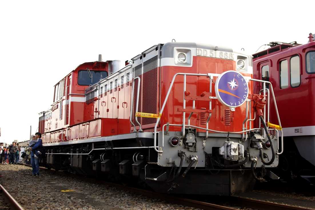 DD51原色:寝台特急「カシオペア」(展示車)令和7年、とうとう引退となってしまった「カシオペア」。定期「カシオペア」時代。函館~札幌間の牽引機は、平成11年の運転開始以来、一貫してDD51型が重連で牽引にあたりました。「北斗星」は運転開始初期にDD51型原色が牽引しましたが、直ぐに北斗星色に塗り替えられてしまったため、後発の「カシオペア」の牽引は北斗星色のみとなっています。したがって、原色のDD51に「カシオペア」のヘッドマークが付くのはイベントに限られました。平成22年11月20日 DD51888平成24年11月10日 DD51842いずれも「尾久ふれあい鉄道フェスティバル」における展示です。DD51は高崎のものですから、当然にして「カシオペア」を牽く機会はありません。考えてみれば、私が最後に北海道へ行ったのが平成5年ですから、まだ「カシオペア」という列車自体が存在していません。よって、DD51牽引の「カシオペア」は実物さえ見たことが無い訳です。鉄道誌などで見慣れてしまったため、新鮮さの感じられないDD51牽引「カシオペア」ですが、終わってみればこの架空の姿しか記録に残っていないというのも非常に残念です。