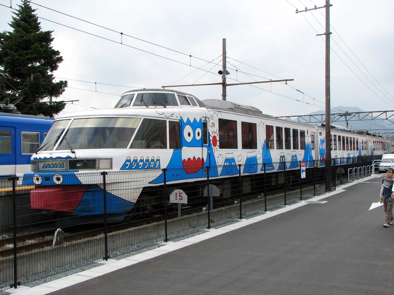 富士急行線2000形:2001編成「フジサン特急」※本記事は、2016-01-12に投稿したもので、当時の表現になっています。富士急行線では、平成26年2月に引退した2000形2002編成に続き、平成28年2月をもって残る2001編成が引退することとなりました。同形式は元国鉄165系「パノラマエクスプレスアルプス」であり、導入経緯等は過去ログ『富士急行線2000形:パノラマエクスプレスアルプス復刻塗装(乗車編)』で触れていますので、ここでは割愛いたしますが、元JR東海371系からの改造導入される「フジサンビュー特急」の入線により引退となります。過去ログでも触れていますが、せっかく優れたデザインの車両に描かれたフジサンの絵がどうしようもなく嫌いなので、わざわざ写真を撮りに行く気にはなれなかったのですが、たまたま機会があって少しだけ記録していました。平成18年10月22日 河口湖駅にてバスコレ等の限定品を購入するために現地へ訪れた際に撮った写真。というか、やっと撮れたのがこの1枚。本来なら購入後に撮影に徹する予定でしたが、余りの手際の悪さに暴動寸前までヒートアップしたバスコレ販売史上に名を残すことになった現場です。9時頃に到着して写真を撮り始めたのが13:30ですから、如何に酷かったかご理解いただけると思います。そんなつらい思い出の1枚です。平成21年3月28日 大月駅にてこれも富士急の撮影に行った訳ではなく、中央線撮影会の集合を大月駅としたため、待ち合わせの合間にたまたま撮影できたものです。その後、2002編成の引退時に撮影した際は2001編成が検査中であったため撮影することができず、撮影できたのはこの2枚だけでした。戦後鉄道史で活躍した急行型電車も北陸地域にほんの一部が残るのみであり、直流急行型の残党もここに消滅することになりそうです。『富士急行線2000形:パノラマエクスプレスアルプス復刻塗装(乗車編)』『富士急行線2000形:パノラマエクスプレスアルプス復刻塗装(駅撮り編)』