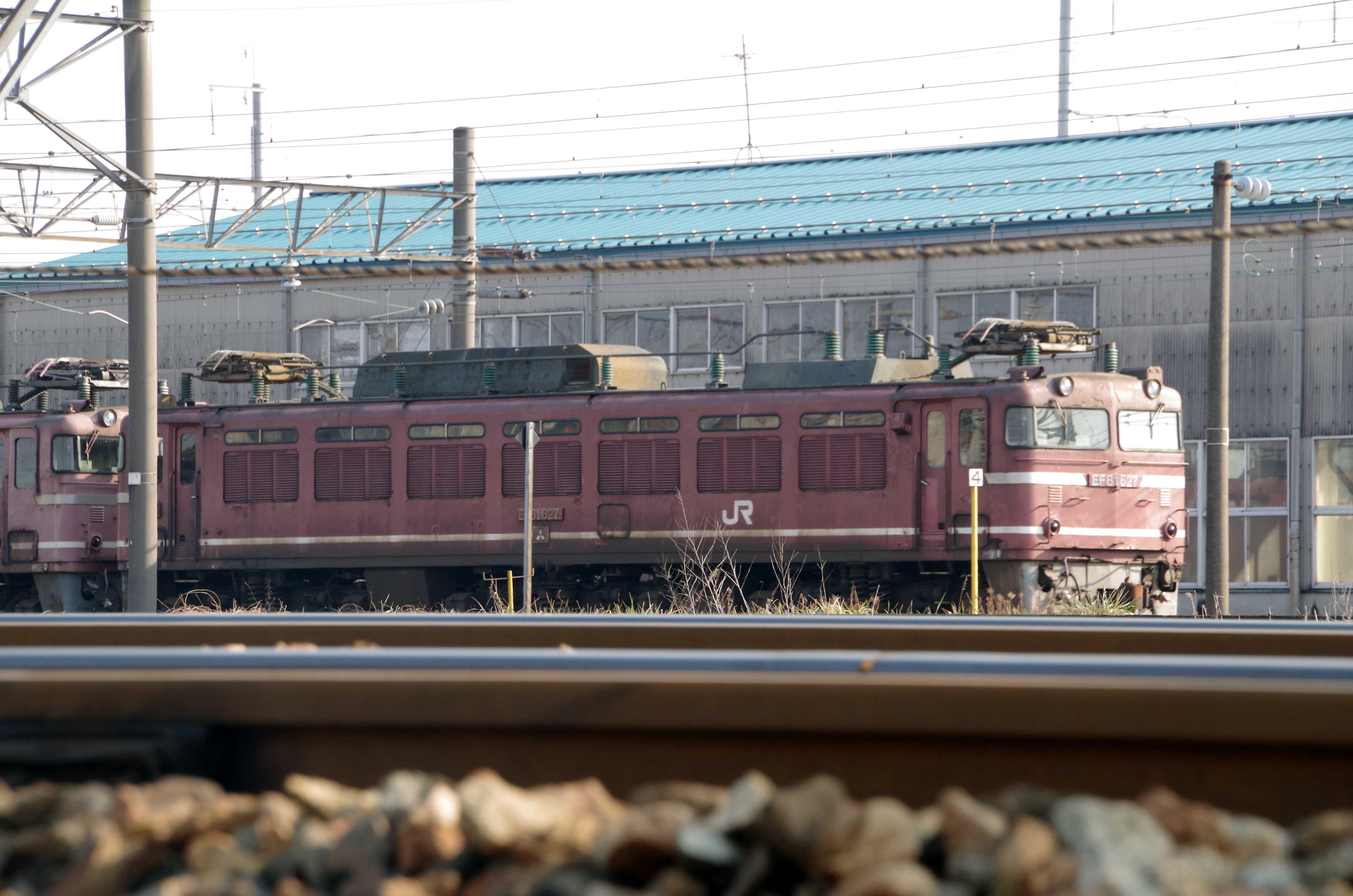 JR貨物 EF81627EF81シリーズで、今回はJR貨物所属のEF81627です。昭和44年9月6日、EF8127号機として三菱で誕生したカマで、富山第二機関区に配置されています。以来、北陸本線を中心に活躍し、民営化の際にJR貨物(富山機関区)へ継承されます。その運用範囲は関西から青森まで広範囲で活躍しました。改番により+600番台が与えられ、EF81627号機となります。600番台の中で最若番でした。平成27年1月25日 富山機関区にて北陸本線での撮影を行っていた際、機関区に留置中のEF81627を撮影したものです。複数が繋がっていた記憶ですが、手前の車両に隠れていたためこのような構図になっています。隣のカマも同形態で、おそらくは同時に休車となっていたEF81628号機と思われます。この時点において初期車は既に運用を離脱しており、廃車待ちの留置と考えられます。しかし、そのまま永らく保留となっていたようで、令和元年度になってから除籍されたそうです。