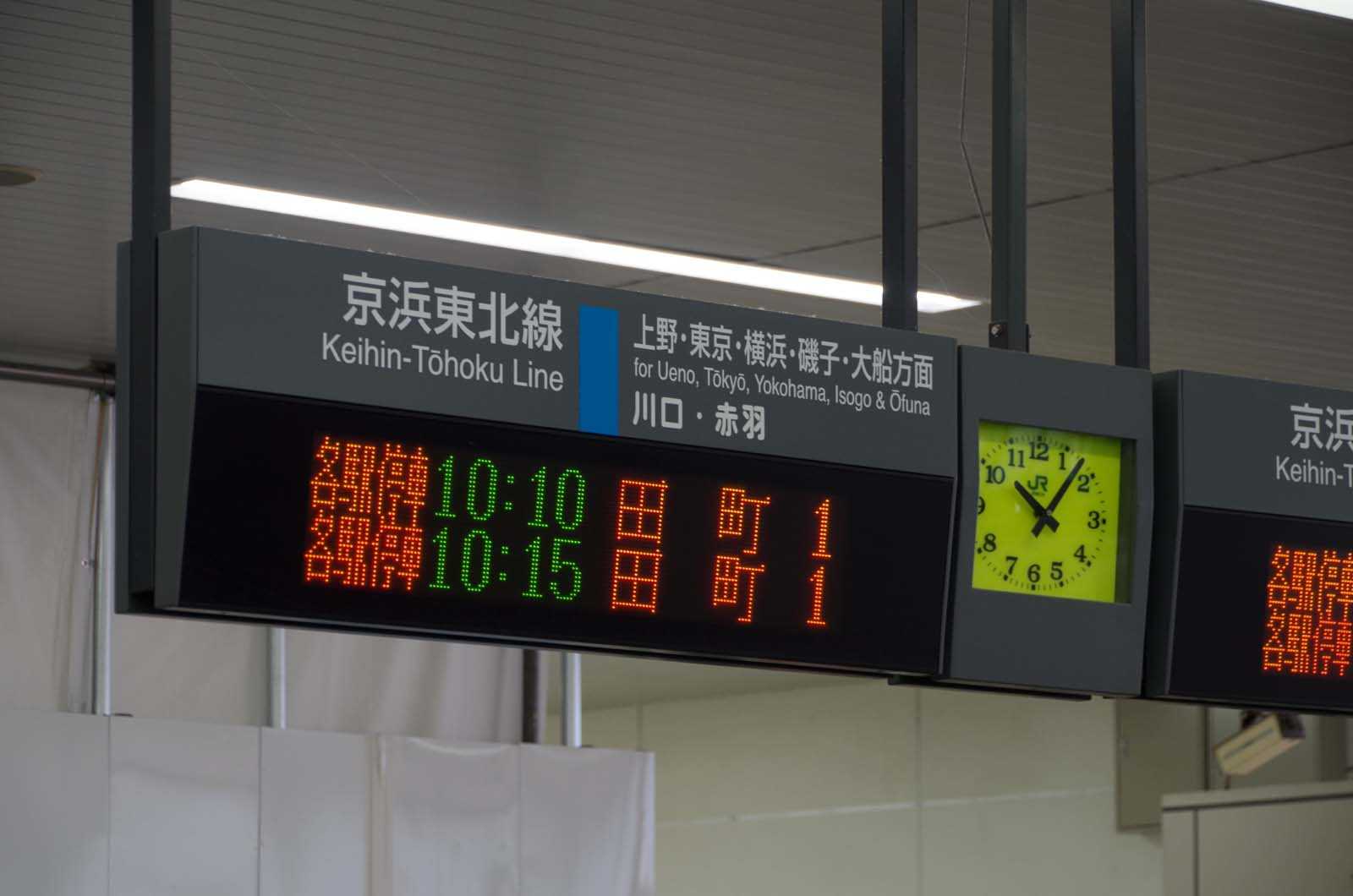 令和元年 品川駅線路切換工事関連:京浜東北線前記事に続き、高輪ゲートウェイ駅開業に関係する品川駅構内の線路切換工事に伴い運休区間が発生した京浜東北線の様子をまとめます。前回の工事運休時は、上野~品川間が運休となり、南行が上野行きとなった訳ですが、今回は山手線が上野駅折り返しとなったため、次に折り返し可能な田町駅での折り返し運転が組まれました。南部北行は品川駅で折り返しとなっています。時間と気力の関係で、南部地域には行っていませんのでご了承を。※撮影は、令和元年11月16日、西日暮里駅にて。蕨駅の発車表示板は、田町行きの連続。前回は上野行きと東十条行きを交互とし、上野駅の折り返し間合いを確保しましたが、今回は山手線を上野止まりとしたため、田町駅での折り返しで山手線と交錯しないことにより、このようなダイヤ設定ができたものと思われます。イベント時にしか見られなかったような行先表示が実現しました。蕨駅にて E233系 9011A 田町行き実は、103系時代にも「田町」のサボは収録されており、クモハ+クハの中間連結部において職員のいたずらと思われる表示を時折見たことがありました。表示が「京浜東北線」と交互になるため、停車中の写真を撮ろうと思ったのですが、最近になってホーム内方に新しい柵が設置されてしまい、以前のような撮り方ができなくなってしまいました。西日暮里駅にて E233系 9015A 田町行き山手線との並走区間は、山手線の11両に合わせたホーム柵となっていて前後の余裕はあるのですが、ホームドアが設置されてしまったために停車中の写真撮影はもうダメですね。田端方も架線柱が交換されてからは真ん中にズドーンと。山手線はスッキリ撮れますが、京浜はダメダメです。蕨~西川口間にて E233系 9073A 田町行き蕨~西川口間にて E233系 9013A 田町行き西日暮里駅では10人近い撮り鉄が張り付いているのでアングルはあまり選べず、同じ写真を何枚撮っても仕方ないので早々に退散。しかし、あまりにもまともな写真を撮れなかったので、地元に戻って走行写真を。シャッタースピードが速いと表示が切れてしまい、遅くするとブレてしまうというジレンマ。さらにタイミングが合わなければ「京浜東北線」になってしまう。取り敢えず見られるものをトリミングでごまかして仕上げとします。前回の工事運休からわずか1年半、ホームドアやホーム柵の設置により、駅撮りの融通がまったく利かなくなってしまいました。安全対策に加え、撮り鉄対策としても十分に威力を発揮しているようです。