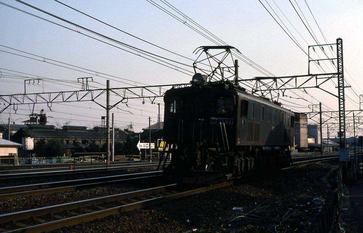 国鉄旧型電機 EF15(東京機関区)EF15シリーズで、今回は東京機関区所属の後期型を中心に色々と。殆どが地元での写真ですが、どの所属のEF15よりも東京機関区所属車が多く残っていました。それだけ山手貨物線系の運用が多く設定されていたものと思われます。昭和57年6月 品川駅にて EF15153品川駅で偶然撮った153号機ですが、このカマは全ての窓がHゴム化されておらず、非常に美しいスタイルのまま残っていました。東京区生え抜きのカマだと思っていたのですが、意外と流転の人生を送っており、最後までこの姿を保っていたのは奇跡と言えるでしょう。153号機昭和32年 8月14日 川崎製 新製配置 新鶴見機関区昭和37年10月 1日 沼津機関区昭和39年 1月11日 広島機関区昭和54年 1月17日 東京機関区(借入れにより53.11.9より在籍)昭和58年11月11日 廃車昭和54年頃 蕨~南浦和間にて EF15157正面窓はもちろんですが、側窓も一切Hゴム化されておりません。もうちょっとサイドの判る写真だと良かったんですが、この角度だと返って側面に凸凹がないのが良く判別できます。157号機昭和32年10月29日 日立製 新製配置 新鶴見機関区昭和34年 1月 7日 長岡第二機関区昭和37年 9月30日 沼津機関区昭和39年 5月13日 広島機関区昭和54年 5月22日 東京機関区昭和58年 8月 5日 廃車昭和55年頃 蕨~西川口間にて EF15180いずれも昭和55年頃に撮った15180号機2点です。180号機は偶然にも2枚撮っていました。180号機(他区貸し出しは多いので省略)昭和33年 9月30日 東芝製 吹田第二機関区昭和40年 9月 3日 広島機関区昭和53年10月 1日 東京機関区昭和58年 1月24日 廃車昭和57年7月頃 蕨駅にて EF15194蕨駅でまだ貨物の取り扱いが行われていた頃。東京機関区にいたのはわずか2年ちょっとだったんですね。194号機昭和33年11月10日 川崎製 新製配置 稲沢第二機関区昭和38年 9月24日 米原機関区昭和39年 8月27日 浜松機関区昭和40年 9月26日 新鶴見機関区昭和55年10月22日 東京機関区昭和58年 2月26日 甲府機関区昭和59年 6月 6日 廃車昭和55年7月頃 蕨~西川口間にて EF15195昭和56年5月頃 蕨~西川口間にて EF15195下記データをご覧いただくとお判りのように、非常に細々転々としております。この写真を撮った後、廃車を免れて身延線用として甲府に転属し、直ぐに八王子に来ています。おそらく、ED16の置換用だとは思いますが、また直ぐに貨物合理化による機関車の大量余剰の憂き目に遭い、あまり活躍する期間も無く廃車になってしまったことが伺えます。195号機昭和33年11月21日 川崎製 新製配置 稲沢第二機関区昭和38年 9月 1日 米原機関区昭和39年 9月 5日 浜松機関区昭和42年 5月20日 新鶴見機関区昭和48年 4月 1日 東京機関区昭和58年 3月15日 甲府機関区昭和58年--月--日 八王子機関区昭和59年 8月24日 廃車昭和5〇年? 蕨~西川口間にて EF15201撮影年が判りませんでした。自分で現像しているネガなので、高校生であった昭和54年後半から昭和57年くらいの間のものと思われます。EF15形機関車自体が202号機を最後に生産を終了しており、この201号機も最終型となります。201号機昭和33年 9月24日 日車・富士製 稲沢第二機関区昭和38年 9月 1日 米原機関区昭和39年 3月23日 広島機関区昭和54年 4月11日 東京機関区昭和59年 6月19日 廃車以下はナンバー不明のEF15ですが、添乗ステップが白く塗られていることから、東京機関区の所属と判明しているものです。昭和54年頃? 蕨~西川口間にて撮影時期が全く分からないコマ。多分、昭和54年頃とは思います。ブレてしまってサイドのナンバーも不鮮明ですが、形態やHゴムの白さから201号機のような気がします。昭和52年頃 蕨~西川口間にてこちらは、サイドがせっかくキレイに写っているのに、ピンボケで番号が不明になってしまったタイプ。プレート型の2ケタ番号車です。昭和52年頃 蕨~西川口間にて2ケタ番号車のようですが、朝日の逆光でサイドが潰れ、デッキが正面のナンバーに掛かって見えません。50番台っぽいです。EF15178(東京機関区)牽引:ワム80000 貨物列車