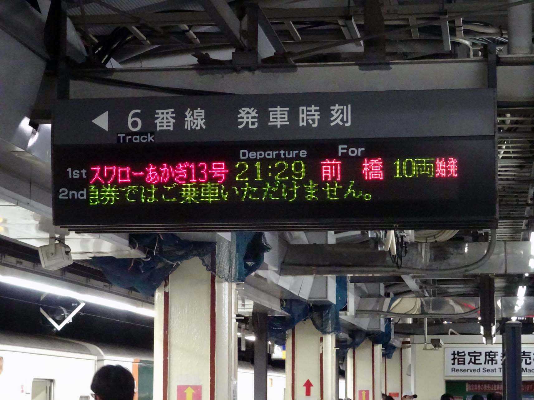 ※撮影は、平成28年3月25日、新宿駅にて。特急「スワローあかぎ13号」最終列車。
