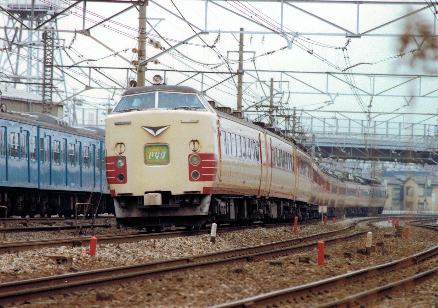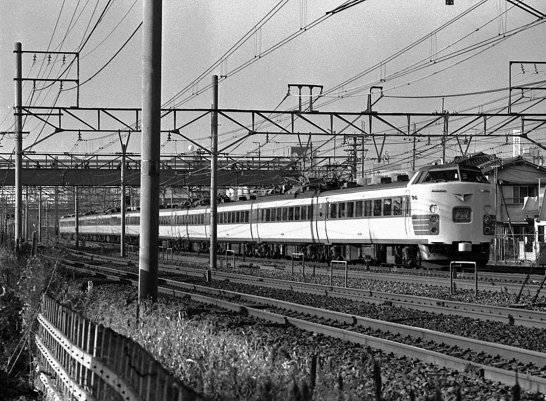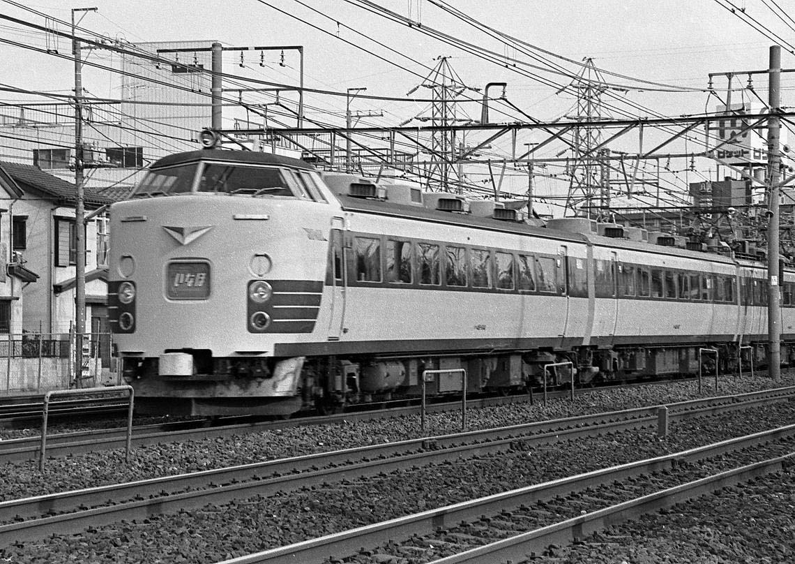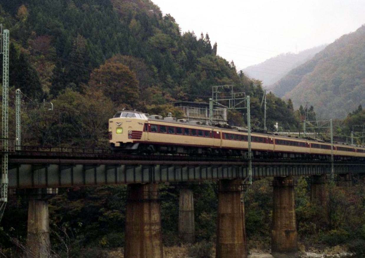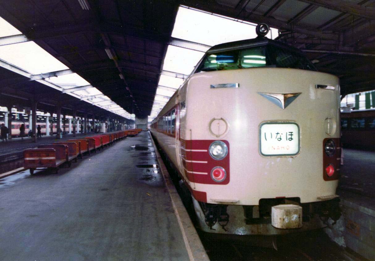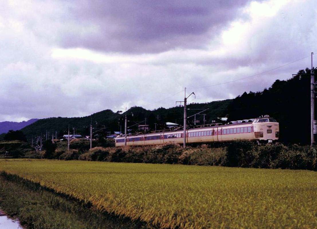 前後にクハ481-1500番台を連結した編成。この頃の運用は良く分かりませんが、新潟・秋田・青森の車両が入り乱れて運用されていたのではないかと思います。JRになってからは、「つばさ」にも1500番台が運用されていましたので、どの時点で何処に1500番台が居たのか良く分かりません。