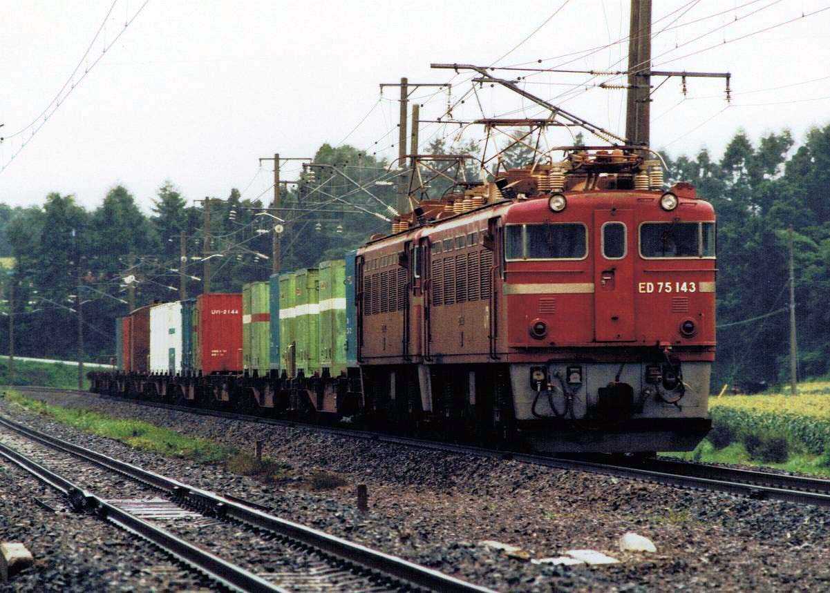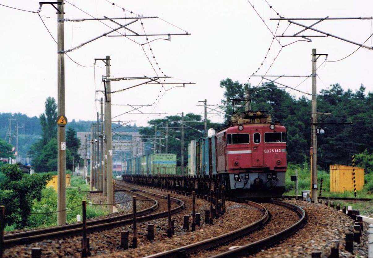 平成2年7月1日 高久~黒磯間にて ED75143牽引 コンテナ貨物列車