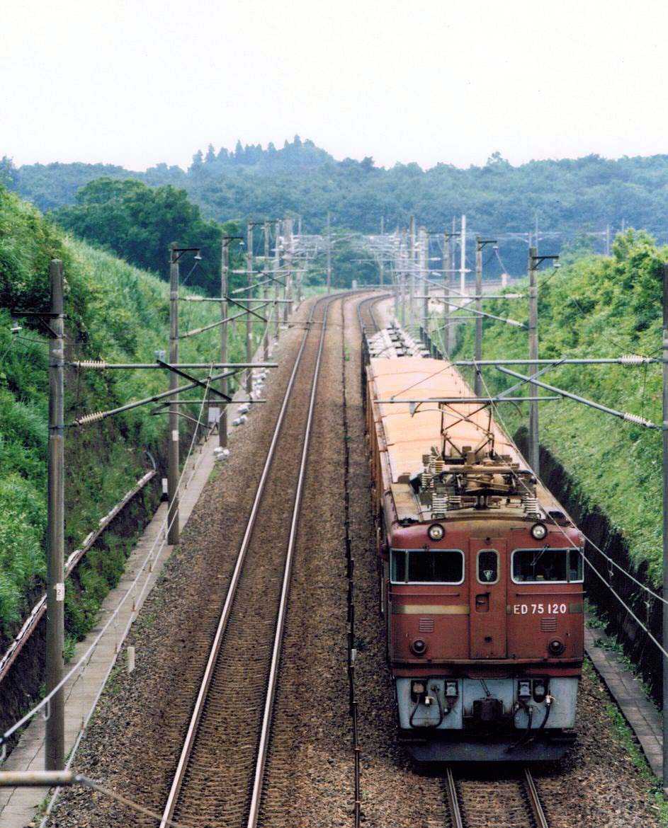 平成2年7月1日 矢吹~泉崎間にて ED75120牽引 車扱い貨物列車