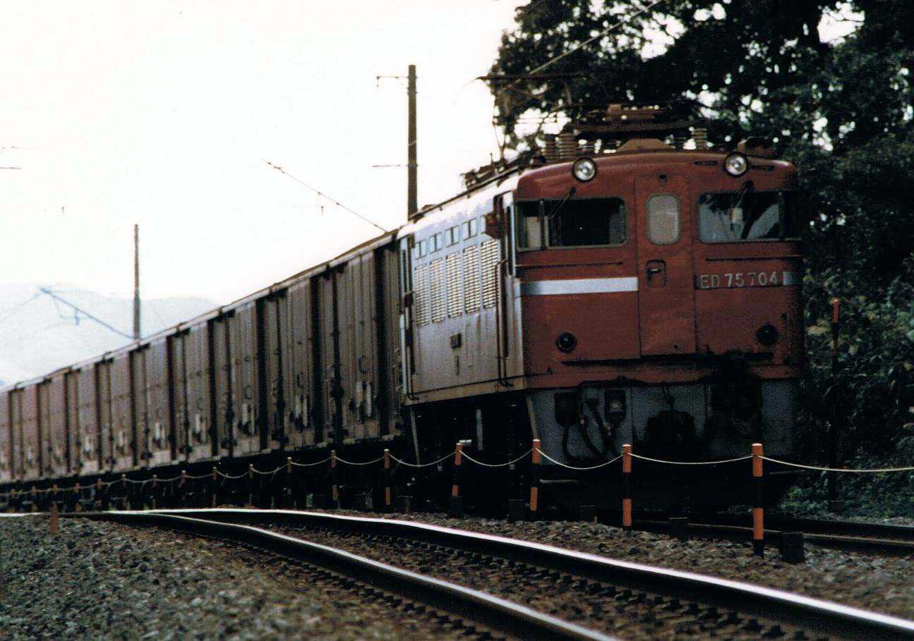 昭和59年10月14日 矢吹~泉崎間にて ED75704牽引 ワム貨物列車