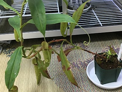 寒い間は狭いところに入れていたので不自然な伸び方です。