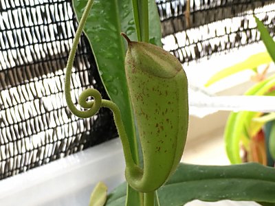 長~い蔓を伸ばしてくるくると巻いてから先端が上を向き膨らみます。