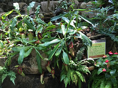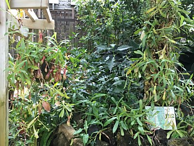 熱帯エリアの一角にネペンテスのアーチを中心とした食虫植物エリアがありました。