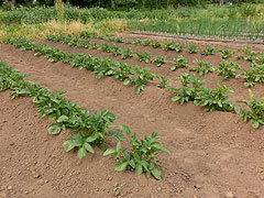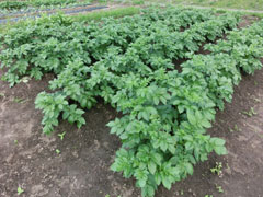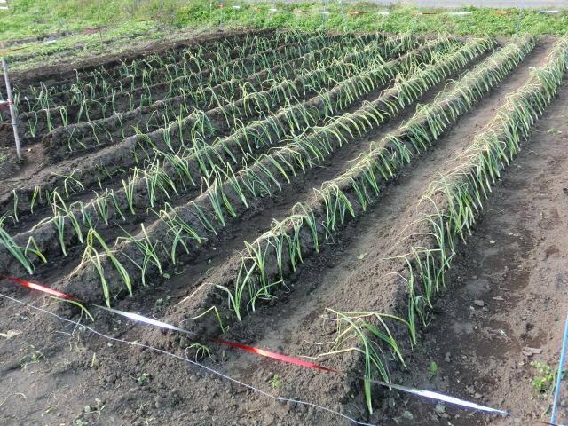 2回目の土寄せを終え、順調に育っているジャガイモと、茎が倒れだしたタマネギはもうすぐ収穫時期です。今年は小さなタマネギが多く、いろいろ反省…です!