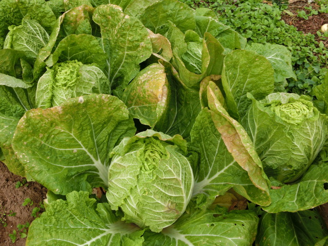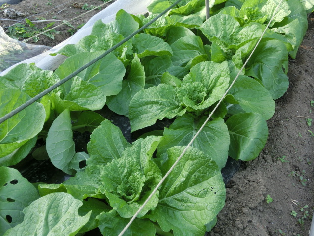 白菜は十分大きく育ち、もうすでに食べ始めています。今年はあまり虫もつかず育ちました。木酢液の効果もあると思います。キャベツはもう少し玉が大きくなったら収穫しようと思います。これから寒い冬がやってきます。白菜とキャベツを美味しくいただこうと思います。