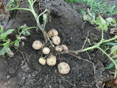 トマトはここ数年、アイコを作っています。生で食べると美味しいので気に入っています。ジャガイモはここ何年もキタアカリばかりを作っています。数株掘ってみました。今年はなかなか出来が良さそうです。ジャガイモは翌年まで食べられるのでたくさん作っています。