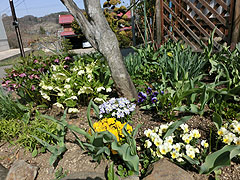 我が家の庭も草花が春らしい陽気とともに咲き始めました。クリスマスローズが見頃で、ビオラがきれいです。水仙がもうすぐ、そしてチューリップも続いて咲きそうです。庭にあるアンズの花も咲き始めました。