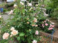 今、我が家の庭はバラの花が満開で見頃です。いろんなバラの花があるので、花を見て楽しみ、そして、香りも楽しんでいます。