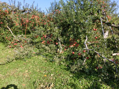 先日の15cm程の湿った雪の重みで、りんごの木の枝が折れ、収穫前のりんごが枝ごと落ちていました。新聞によると中野市で2トン60万円の被害と出ていましたが、飯綱町でも近くの畑で見られるということは、かなりの被害があるのかも知れません。