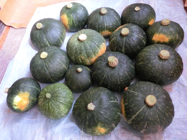 坊ちゃんカボチャと栗みやこカボチャは似ているので、収穫時にいっしょにしたら栗みやこが2個だけなのかなぁ・・・とよくわからなくなってしまいました。坊ちゃんカボチャは大きく育ち、美味しそうです。カボチャがこんなにあっても我が家では食べ切れないなぁ・・・