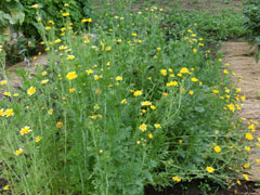 4月に種まきして育った春菊が食べきれず、そのままにしておいたら花が咲きました。黄色い花がきれいです。いろんな野菜を作っていますが、花を咲かせるまで残しておくことはありませんでした。これからは野菜を少し残して、どんな花が咲くか見てみようかなぁ…と思います。