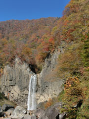 妙高の苗名滝へ滝と紅葉を見に行って来ました。今日は天気にも恵まれ、紅葉もきれいで絶好のタイミングで見ることが出来、苗名滝も紅葉に囲まれ、滝壺からは虹が出ていました。