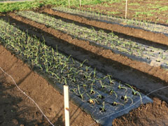 今年もタマネギ苗を約500本定植しました。苗は種をまき育てたのですが、畑を野生の動物に踏み荒らされたため、タマネギの苗も半分くらいしか使えませんでした。3列のタマネギ畑のうち1列分は購入した苗です。来年の収穫時にどっちが大きく育つか楽しみです。